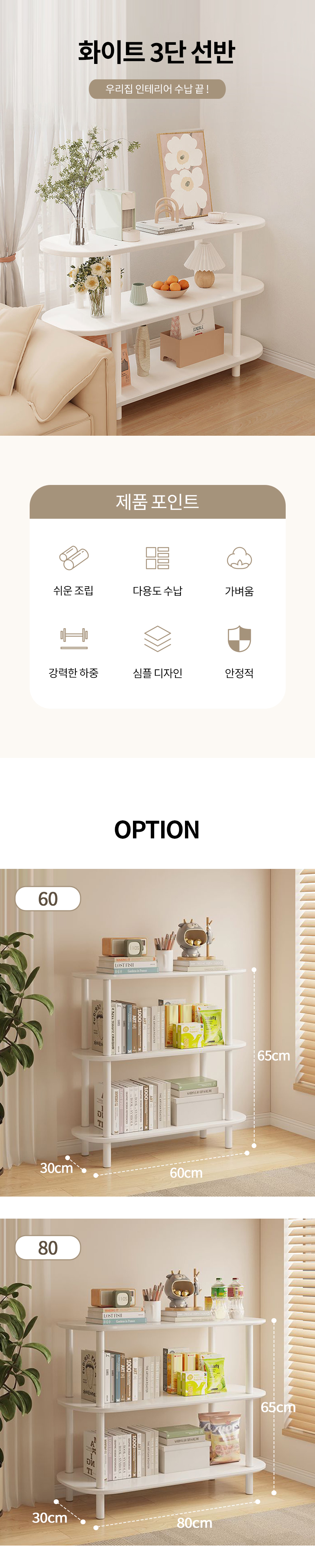 • 화이트 3단 선반
